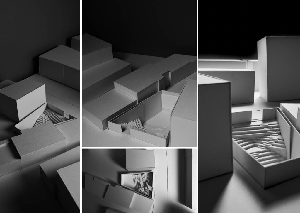 Natalia Wrocinska:“Die Freiluftkino ist ein architektonisches Konzept, das die Verbindung zwischen Film, Theater, Natur und sozialem Raum betont. Dieser Ort sollte einen Zugang für alle Menschen erschaffen, die ein Teil eines kulturellen Ereignisses sein möchten. Die Gestaltung eines Freiluftkinos umfasst die Planung einer offenen Struktur, die an die brutalistische Ästhetik des Ortes angelehnt ist. Die Gestaltung zielt darauf ab, Filme und Theaterstücke im Freien zu zeigen, während der offene Himmel in das Erlebnis integriert wird und die Besucher kurz ihren Alltag vergessen lässt.“