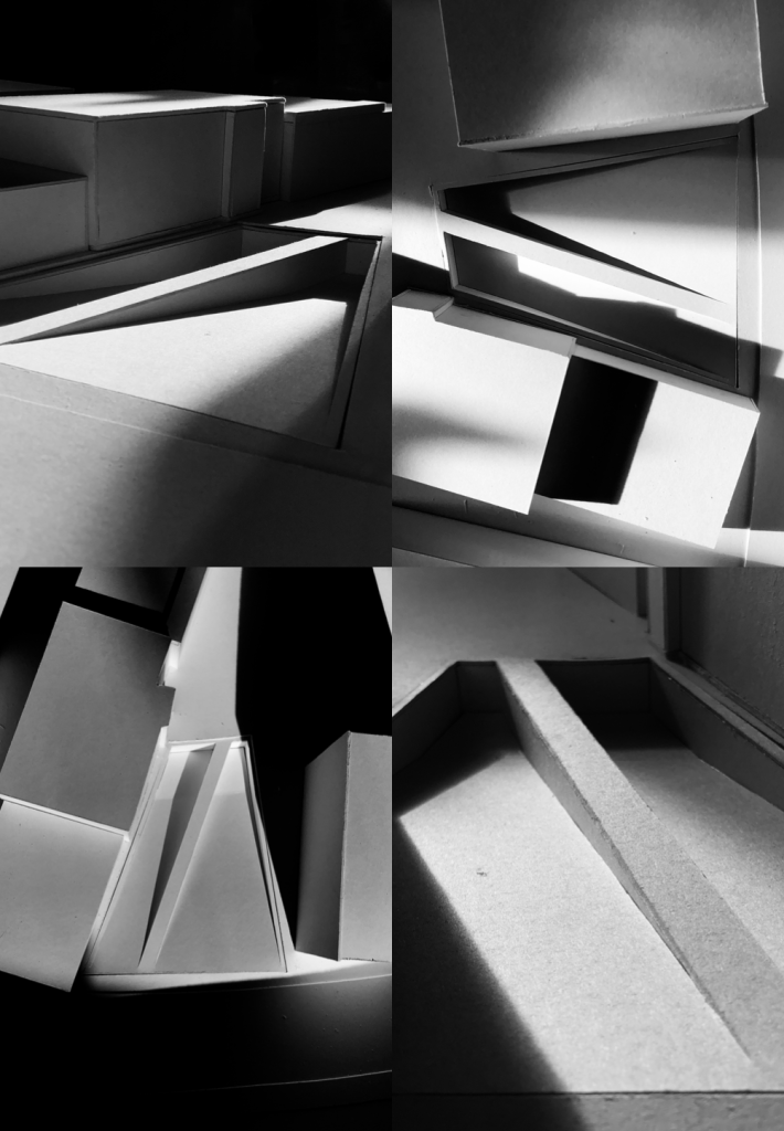 Jessica Heß: „Die Verlängerung der Erschließungsstraße des denkmalgeschützten Ensemble Kyriat Hamelacha teilt das Grundstück in drei Zonen: zwei geneigte, sich in den Boden grabende Ebenen und ein Riegel, der Schatten auf die beiden Ebenen wirft. Die Schatten schaffen in zyklischem Wechsel immer wieder andere Zonen, in denen man sich unterhält, Sport macht, sein Lunch verzehrt, dem Prasseln des Regens zuhört – oder wozu auch immer leere Räume anregen – und was bespielte Räume nicht erlauben…“
